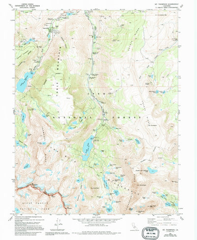 A 1983 historical topographic map of Mount Thompson in California produced by the United States Geological Survey (USGS). It shows contour lines, place names, water bodies and roads. Map services and data available from U.S. Geological Survey, National Geospatial Program. Map was obtained from ht...