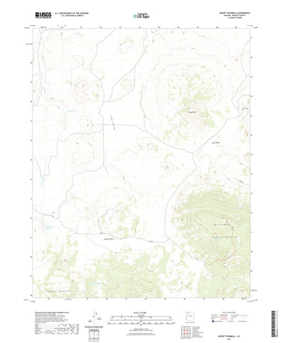 A digital topographic map of Mount Trumbull in Arizona produced by the United States Geological Survey (USGS) in 2021. The map is part of the National Map series of 7.5 minute quadrangle maps. It shows contour lines, place names, water bodies and roads. Map services and data available from U.S. G...
