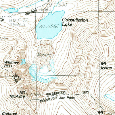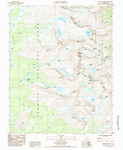 A 1985 historical topographic map of Mount Whitney in California produced by the United States Geological Survey (USGS). It shows contour lines, place names, water bodies and roads. Map services and data available from U.S. Geological Survey, National Geospatial Program. Map was obtained from htt...