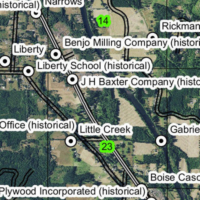 Township Range & Section map with transportation road systems and historical points of interest using 2018 Aerial Imagery.
