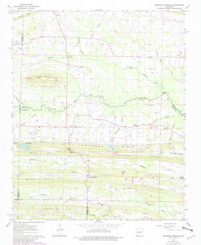 A 1963 historical topographic map of Mountain Springs in Arkansas produced by the United States Geological Survey (USGS). It shows contour lines, place names, water bodies and roads. Map services and data available from U.S. Geological Survey, National Geospatial Program. Map was obtained from ht...
