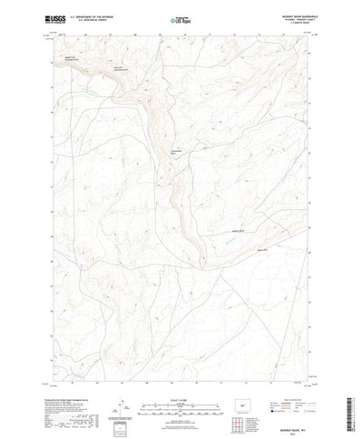 A digital topographic map of Muskrat Basin in Wyoming produced by the United States Geological Survey (USGS) in 2021. The map is part of the National Map series of 7.5 minute quadrangle maps. It shows contour lines, place names, water bodies and roads. Map services and data available from U.S. Ge...