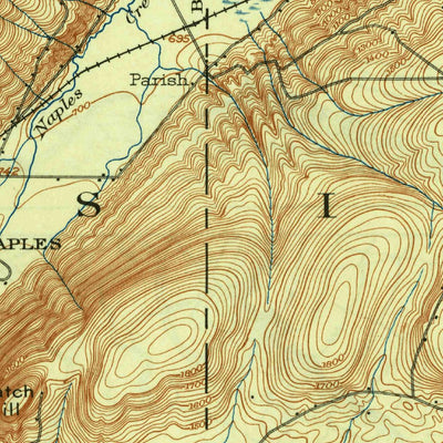 A 1903 historical topographic map of Naples in New York produced by the United States Geological Survey (USGS). It shows contour lines, place names, water bodies and roads. Map services and data available from U.S. Geological Survey, National Geospatial Program. Map was obtained from https://www....