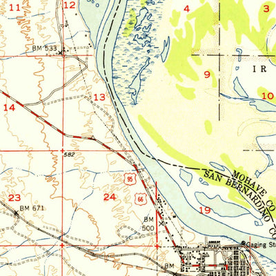 A 1952 historical topographic map of Needles in California produced by the United States Geological Survey (USGS). It shows contour lines, place names, water bodies and roads. Map services and data available from U.S. Geological Survey, National Geospatial Program. Map was obtained from https://w...
