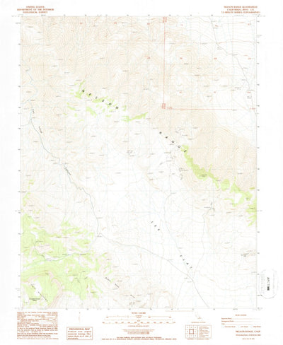 A 1987 historical topographic map of Nelson Range in California produced by the United States Geological Survey (USGS). It shows contour lines, place names, water bodies and roads. Map services and data available from U.S. Geological Survey, National Geospatial Program. Map was obtained from http...