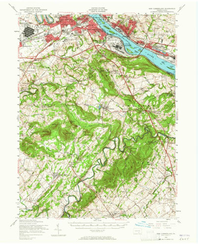 A 1956 historical topographic map of New Cumberland in Pennsylvania produced by the United States Geological Survey (USGS). It shows contour lines, place names, water bodies and roads. Map services and data available from U.S. Geological Survey, National Geospatial Program. Map was obtained from ...