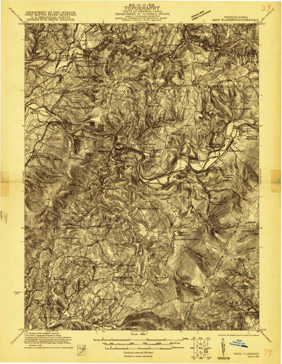 A 1921 historical topographic map of New Florence in Pennsylvania produced by the United States Geological Survey (USGS). It shows contour lines, place names, water bodies and roads. Map services and data available from U.S. Geological Survey, National Geospatial Program. Map was obtained from ht...