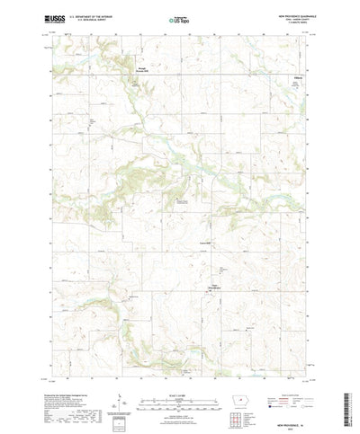 A digital topographic map of New Providence in Iowa produced by the United States Geological Survey (USGS) in 2022. The map is part of the National Map series of 7.5 minute quadrangle maps. It shows contour lines, place names, water bodies and roads. Map services and data available from U.S. Geol...