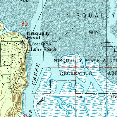 A 1997 historical topographic map of Nisqually in Washington produced by the United States Geological Survey (USGS). It shows contour lines, place names, water bodies and roads. Map services and data available from U.S. Geological Survey, National Geospatial Program. Map was obtained from https:/...
