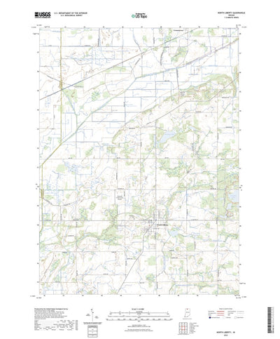 A digital topographic map of North Liberty in Indiana produced by the United States Geological Survey (USGS) in 2022. The map is part of the National Map series of 7.5 minute quadrangle maps. It shows contour lines, place names, water bodies and roads. Map services and data available from U.S. Ge...