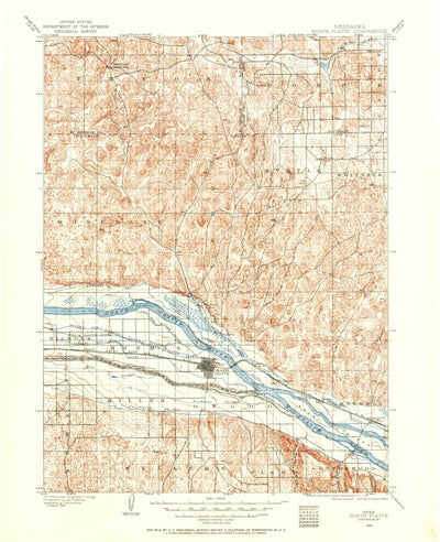 A 1899 historical topographic map of North Platte in Nebraska produced by the United States Geological Survey (USGS). It shows contour lines, place names, water bodies and roads. Map services and data available from U.S. Geological Survey, National Geospatial Program. Map was obtained from https:...