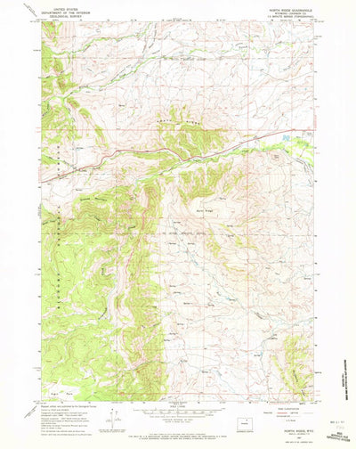 A 1967 historical topographic map of North Ridge in Wyoming produced by the United States Geological Survey (USGS). It shows contour lines, place names, water bodies and roads. Map services and data available from U.S. Geological Survey, National Geospatial Program. Map was obtained from https://...