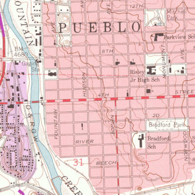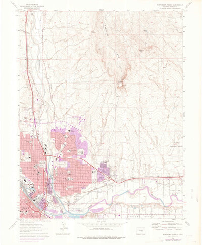 A 1961 historical topographic map of Northeast Pueblo in Colorado produced by the United States Geological Survey (USGS). It shows contour lines, place names, water bodies and roads. Map services and data available from U.S. Geological Survey, National Geospatial Program. Map was obtained from ht...