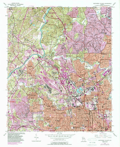 A 1954 historical topographic map of Northwest Atlanta in Georgia produced by the United States Geological Survey (USGS). It shows contour lines, place names, water bodies and roads. Map services and data available from U.S. Geological Survey, National Geospatial Program. Map was obtained from ht...