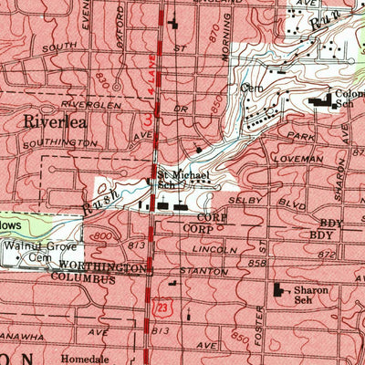 A 1995 historical topographic map of Northwest Columbus in Ohio produced by the United States Geological Survey (USGS). It shows contour lines, place names, water bodies and roads. Map services and data available from U.S. Geological Survey, National Geospatial Program. Map was obtained from http...