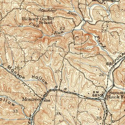 A 1912 historical topographic map of Oak Hill in Ohio produced by the United States Geological Survey (USGS). It shows contour lines, place names, water bodies and roads. Map services and data available from U.S. Geological Survey, National Geospatial Program. Map was obtained from https://www.sc...