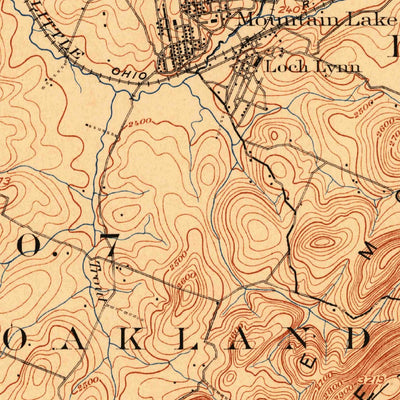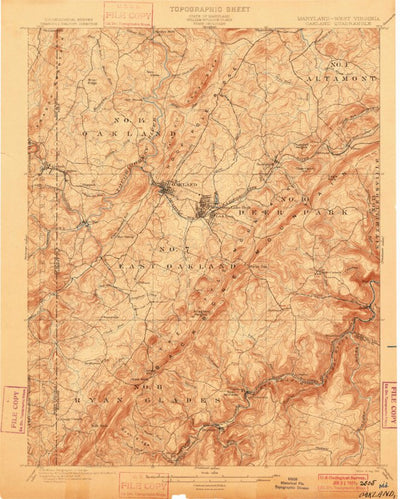 A 1900 historical topographic map of Oakland in Maryland produced by the United States Geological Survey (USGS). It shows contour lines, place names, water bodies and roads. Map services and data available from U.S. Geological Survey, National Geospatial Program. Map was obtained from https://www...