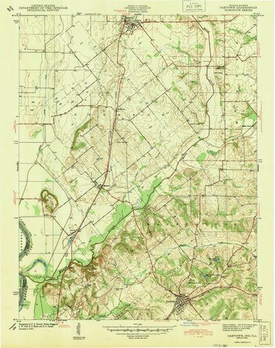 A 1943 historical topographic map of Oaktown in Indiana produced by the United States Geological Survey (USGS). It shows contour lines, place names, water bodies and roads. Map services and data available from U.S. Geological Survey, National Geospatial Program. Map was obtained from https://www....