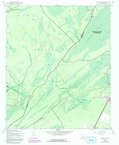 A 1943 historical topographic map of Ocean Bay in South Carolina produced by the United States Geological Survey (USGS). It shows contour lines, place names, water bodies and roads. Map services and data available from U.S. Geological Survey, National Geospatial Program. Map was obtained from htt...