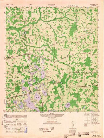 A 1949 historical topographic map of Odessa in Florida produced by the United States Geological Survey (USGS). It shows contour lines, place names, water bodies and roads. Map services and data available from U.S. Geological Survey, National Geospatial Program. Map was obtained from https://www.s...