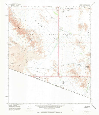 A 1965 historical topographic map of O'Neill Hills in Arizona produced by the United States Geological Survey (USGS). It shows contour lines, place names, water bodies and roads. Map services and data available from U.S. Geological Survey, National Geospatial Program. Map was obtained from https:...