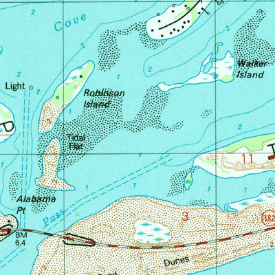 A 1980 historical topographic map of Orange Beach in Alabama produced by the United States Geological Survey (USGS). It shows contour lines, place names, water bodies and roads. Map services and data available from U.S. Geological Survey, National Geospatial Program. Map was obtained from https:/...
