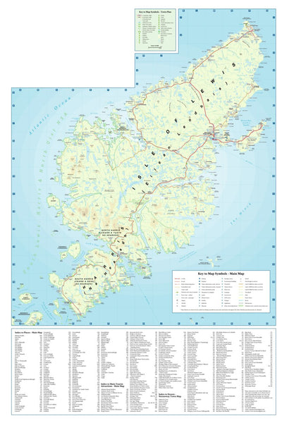 Tourist map covering Lewis & Harris as well as Uists, Benbecula & Barra
