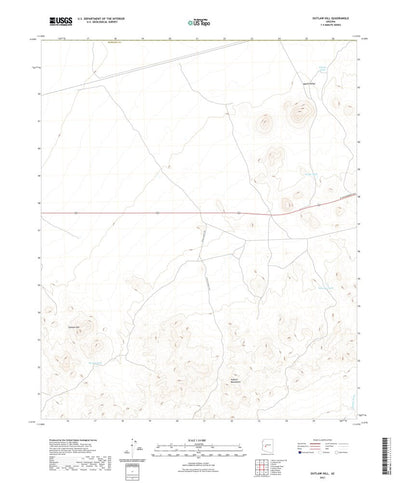 A digital topographic map of Outlaw Hill in Arizona produced by the United States Geological Survey (USGS) in 2021. The map is part of the National Map series of 7.5 minute quadrangle maps. It shows contour lines, place names, water bodies and roads. Map services and data available from U.S. Geol...