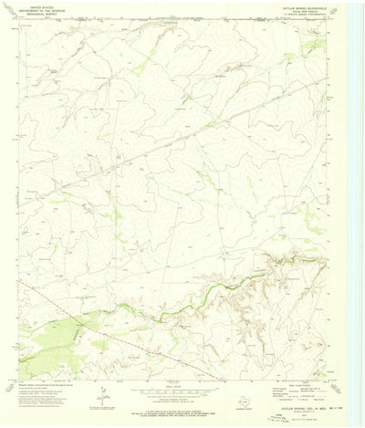 A 1973 historical topographic map of Outlaw Spring in Texas produced by the United States Geological Survey (USGS). It shows contour lines, place names, water bodies and roads. Map services and data available from U.S. Geological Survey, National Geospatial Program. Map was obtained from https://...