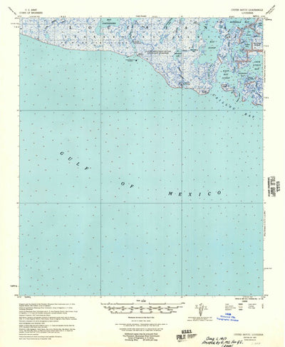 A 1957 historical topographic map of Oyster Bayou in Louisiana produced by the United States Geological Survey (USGS). It shows contour lines, place names, water bodies and roads. Map services and data available from U.S. Geological Survey, National Geospatial Program. Map was obtained from https...