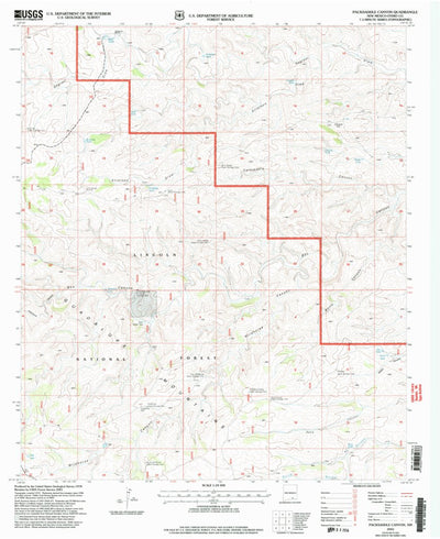 A 2001 historical topographic map of Packsaddle Canyon in New Mexico produced by the United States Geological Survey (USGS). It shows contour lines, place names, water bodies and roads. Map services and data available from U.S. Geological Survey, National Geospatial Program. Map was obtained from...