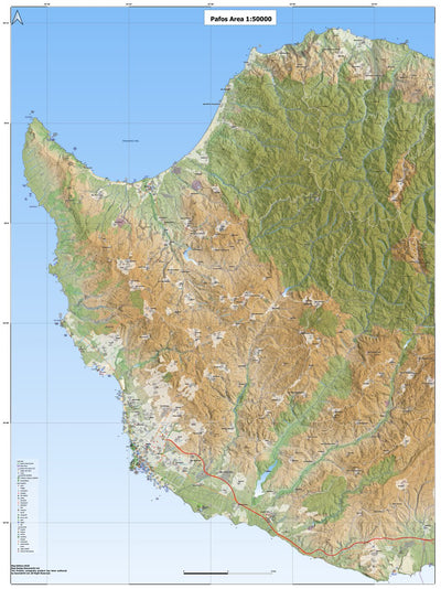 The digital Map of Pafos District in scale 1:50000 including Akamas Natura Area and Pafos Forest, published by Geometriki Ltd the leading cartographic company in Cyprus.