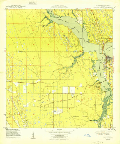 A 1950 historical topographic map of Palm City in Florida produced by the United States Geological Survey (USGS). It shows contour lines, place names, water bodies and roads. Map services and data available from U.S. Geological Survey, National Geospatial Program. Map was obtained from https://ww...