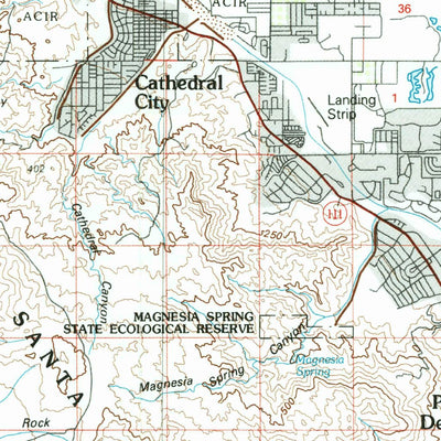 A 1984 historical topographic map of Palm Springs in California produced by the United States Geological Survey (USGS). It shows contour lines, place names, water bodies and roads. Map services and data available from U.S. Geological Survey, National Geospatial Program. Map was obtained from http...