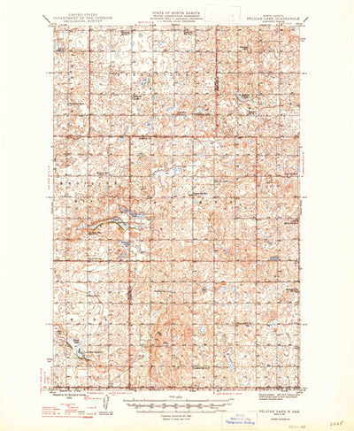 A 1947 historical topographic map of Pelican Lake in North Dakota produced by the United States Geological Survey (USGS). It shows contour lines, place names, water bodies and roads. Map services and data available from U.S. Geological Survey, National Geospatial Program. Map was obtained from ht...