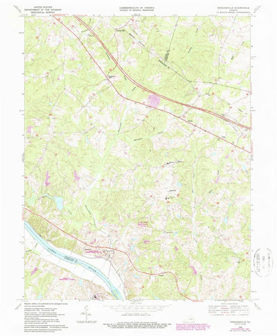 A 1968 historical topographic map of Perkinsville in Virginia produced by the United States Geological Survey (USGS). It shows contour lines, place names, water bodies and roads. Map services and data available from U.S. Geological Survey, National Geospatial Program. Map was obtained from https:...
