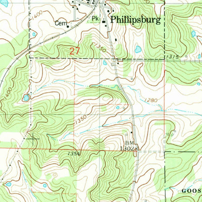 A 1982 historical topographic map of Phillipsburg in Missouri produced by the United States Geological Survey (USGS). It shows contour lines, place names, water bodies and roads. Map services and data available from U.S. Geological Survey, National Geospatial Program. Map was obtained from https:...