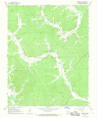 A 1967 historical topographic map of Piedmont SE in Missouri produced by the United States Geological Survey (USGS). It shows contour lines, place names, water bodies and roads. Map services and data available from U.S. Geological Survey, National Geospatial Program. Map was obtained from https:/...