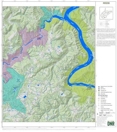This map was produced using USGS 7.5-minute quadrangles. The maps shows locations of public lands including, but not limited to national forests, state forests, wildlife management areas, and county/city parks in the Pipestem quadrangle. The map also shows West Virginia Division of Natural Resour...