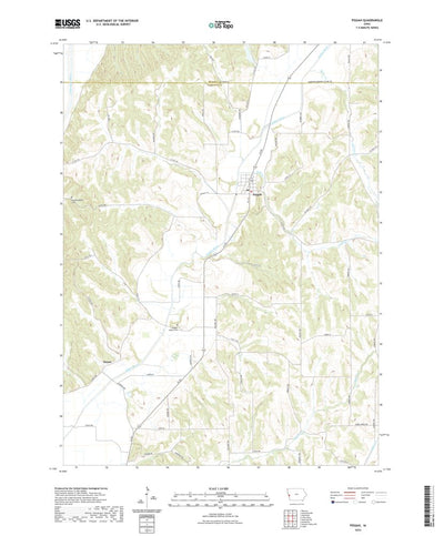 A digital topographic map of Pisgah in Iowa produced by the United States Geological Survey (USGS) in 2022. The map is part of the National Map series of 7.5 minute quadrangle maps. It shows contour lines, place names, water bodies and roads. Map services and data available from U.S. Geological S...
