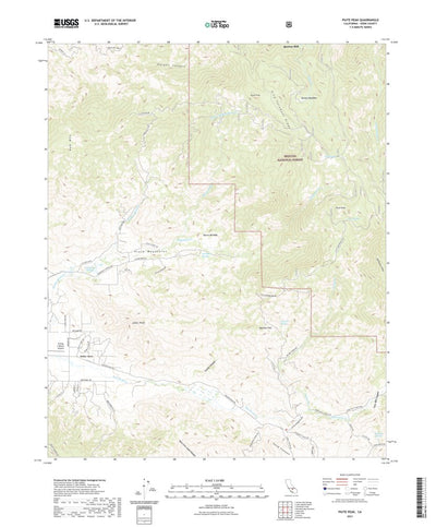 A digital topographic map of Piute Peak in California produced by the United States Geological Survey (USGS) in 2021. The map is part of the National Map series of 7.5 minute quadrangle maps. It shows contour lines, place names, water bodies and roads. Map services and data available from U.S. Ge...