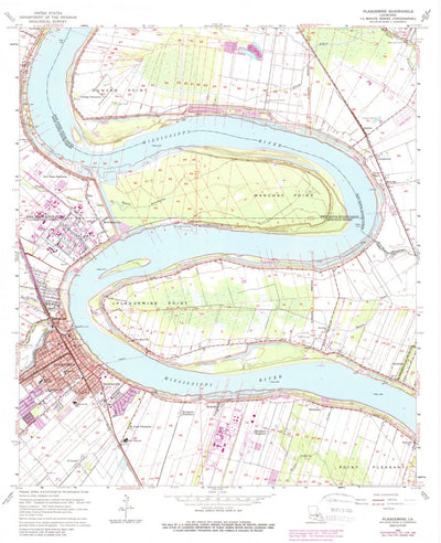 A 1963 historical topographic map of Plaquemine in Louisiana produced by the United States Geological Survey (USGS). It shows contour lines, place names, water bodies and roads. Map services and data available from U.S. Geological Survey, National Geospatial Program. Map was obtained from https:/...