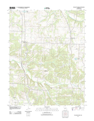 A digital topographic map of Pleasant Hope in Missouri produced by the United States Geological Survey (USGS) in 2011. The map is part of the National Map series of 7.5 minute quadrangle maps. It shows contour lines, place names, water bodies and roads. Map services and data available from U.S. G...