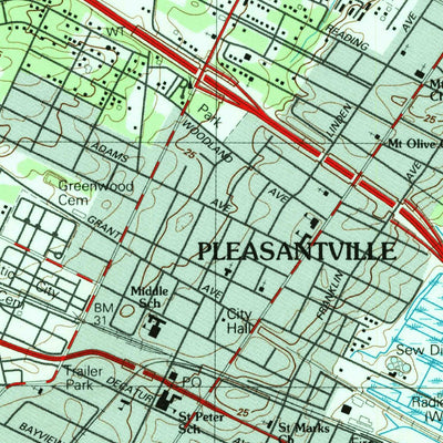 A 1989 historical topographic map of Pleasantville in New Jersey produced by the United States Geological Survey (USGS). It shows contour lines, place names, water bodies and roads. Map services and data available from U.S. Geological Survey, National Geospatial Program. Map was obtained from htt...
