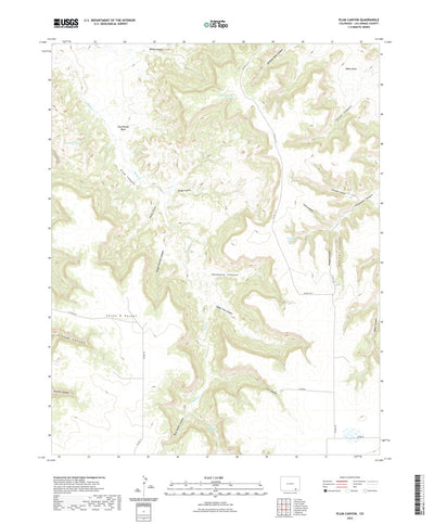 A digital topographic map of Plum Canyon in Colorado produced by the United States Geological Survey (USGS) in 2022. The map is part of the National Map series of 7.5 minute quadrangle maps. It shows contour lines, place names, water bodies and roads. Map services and data available from U.S. Geo...
