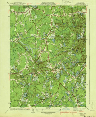 A 1941 historical topographic map of Plympton in Massachusetts produced by the United States Geological Survey (USGS). It shows contour lines, place names, water bodies and roads. Map services and data available from U.S. Geological Survey, National Geospatial Program. Map was obtained from https...