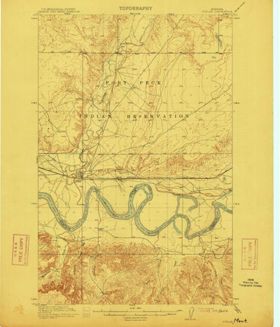 A 1912 historical topographic map of Poplar in Montana produced by the United States Geological Survey (USGS). It shows contour lines, place names, water bodies and roads. Map services and data available from U.S. Geological Survey, National Geospatial Program. Map was obtained from https://www.s...