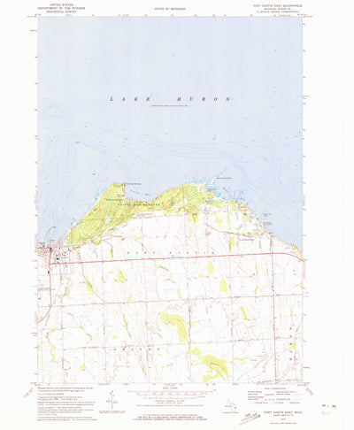 A 1970 historical topographic map of Port Austin East in Michigan produced by the United States Geological Survey (USGS). It shows contour lines, place names, water bodies and roads. Map services and data available from U.S. Geological Survey, National Geospatial Program. Map was obtained from ht...