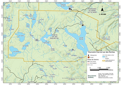 Limite de la pourvoirie Club du Lac des Perches. On y retrouve les hébergements, accueil, chemins, lacs et rivières disponible sur le territoire.