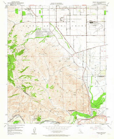 A 1949 historical topographic map of Prado Dam in California produced by the United States Geological Survey (USGS). It shows contour lines, place names, water bodies and roads. Map services and data available from U.S. Geological Survey, National Geospatial Program. Map was obtained from https:/...